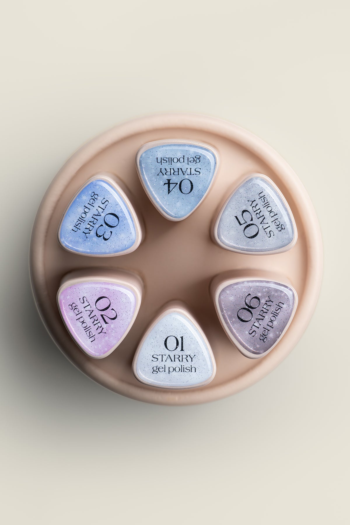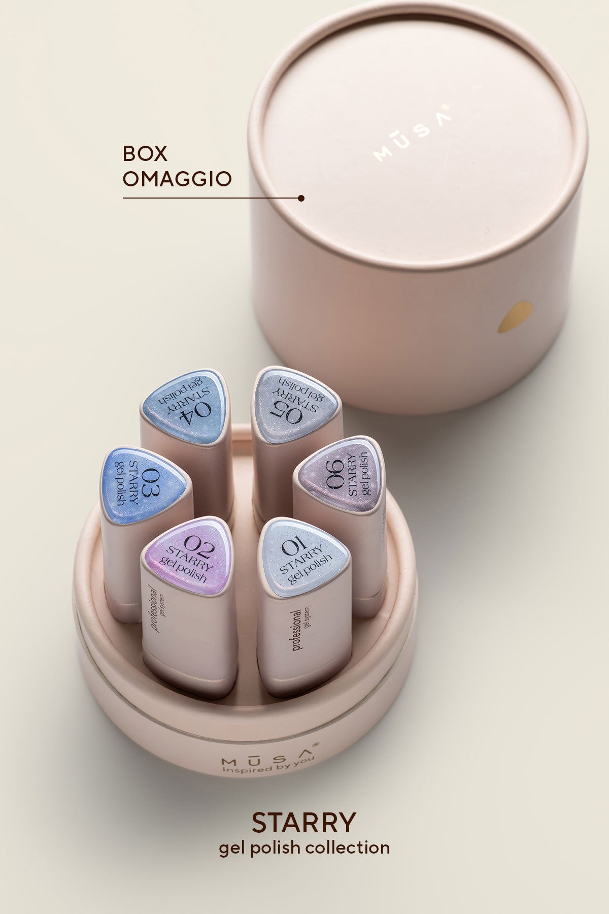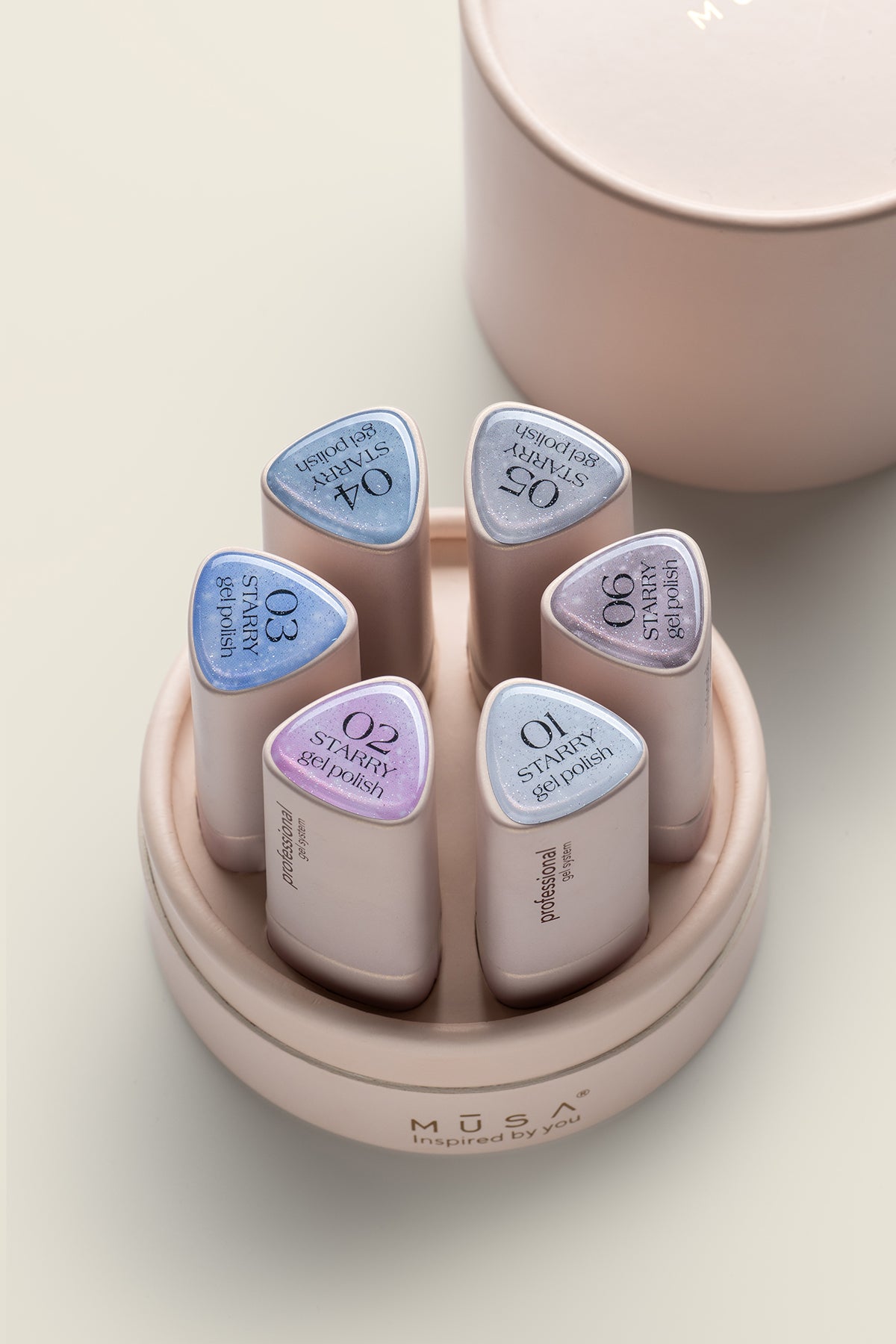 The Starry collection by Musa Nails contains six gel polishes in glittery colours in an elegant ivory-coloured box.