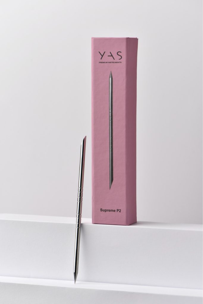 It has 2 ends: beveled end for pushing and cleaning and the scorer
