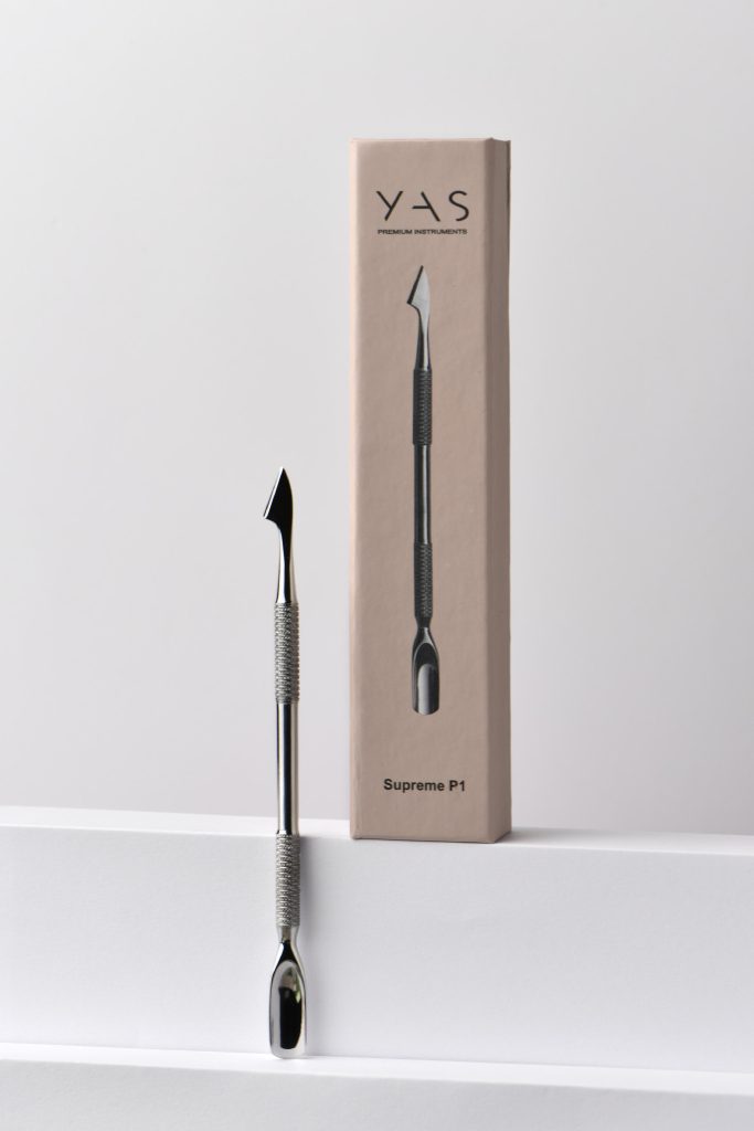 Cuticle pusher processed by hand. It has 2 parts: the ax in the shape of a triangle, 1 cm