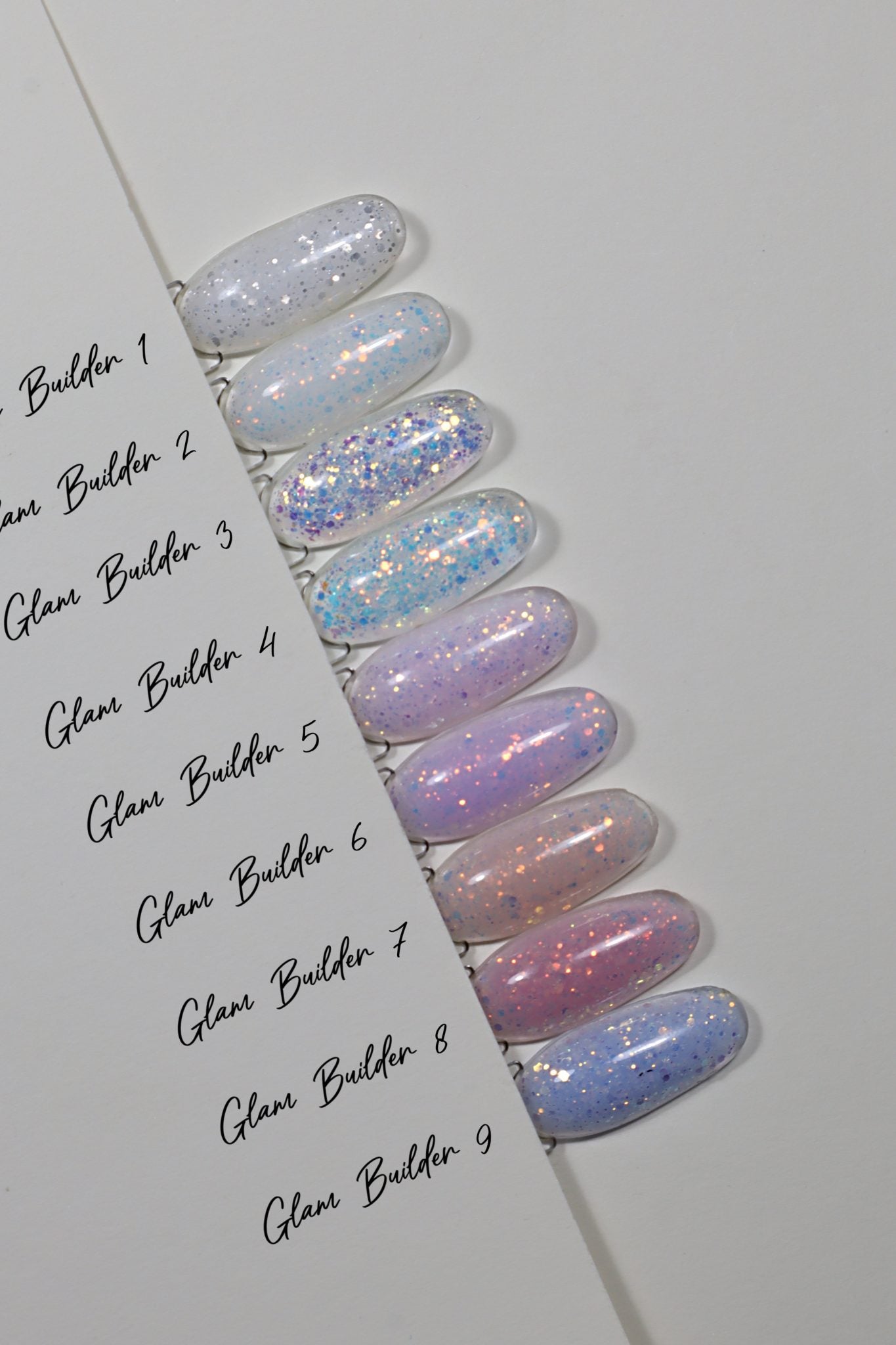 Glam Builder Gel is a jelly-type forming gel with glitter inserts and holographic particles.
